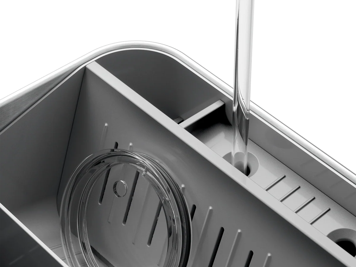 The Bottle Dock is a sleek, steel‑framed drying organizer built to hold up to three oversized bottles or tumblers (especially those not safe for dishwashers), along with their lids and straws. It features a diatomaceous earth base that absorbs drips and moisture, silicone‑capped wire racks that grip bottles gently (preventing scratches), and a built‑in airflow design to speed drying and reduce lingering dampness.