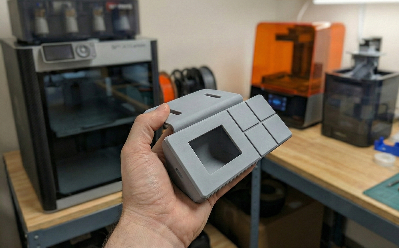 I led early research (forms, material finishes, competitors) and initial sketching. Then, I developed 3D CAD models, collaborating directly with our manufacturing partner to align the ergonomic design intent with strict engineering requirements. Selected concepts were translated into CAD to verify internal packaging constraints for the digital display and PCB/components. I executed full-scale physical mockups to iteratively test dimensions, mounting bracket angles, and tactile feedback against the physical desk edge.